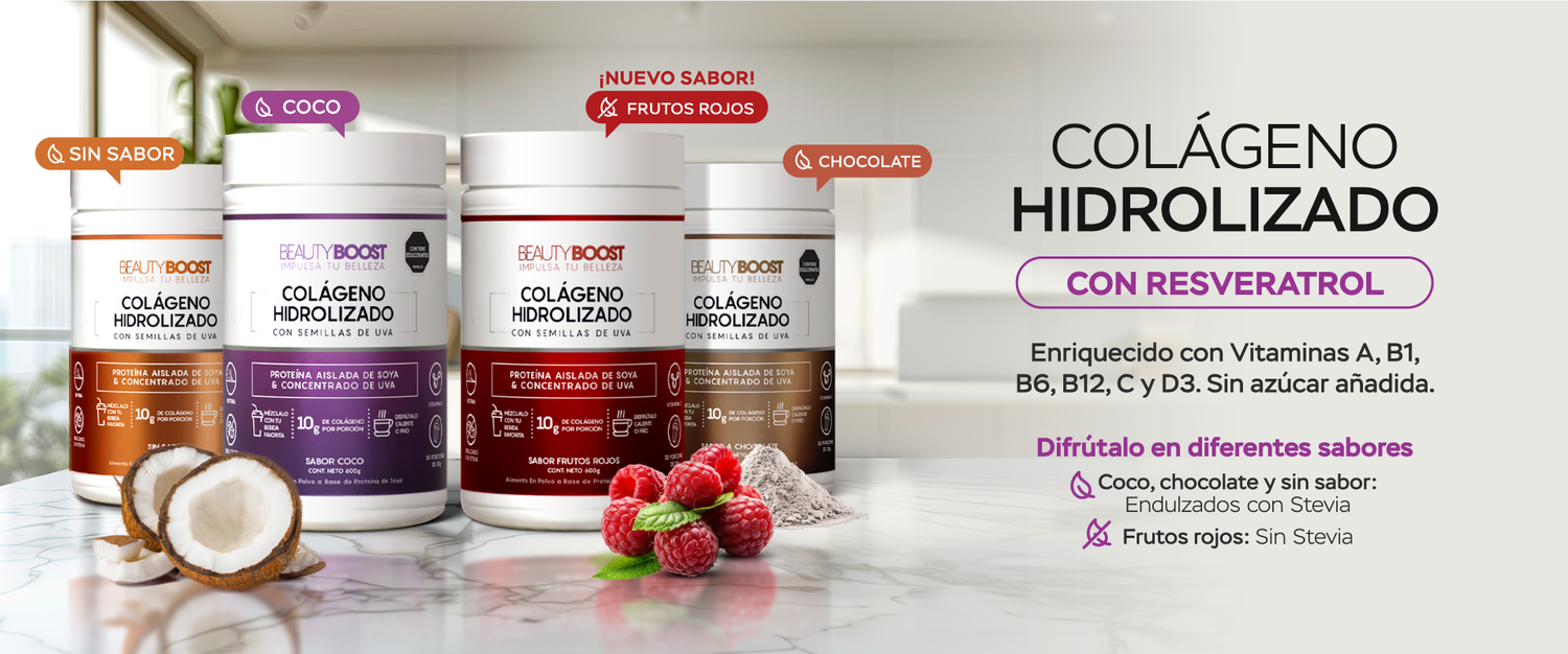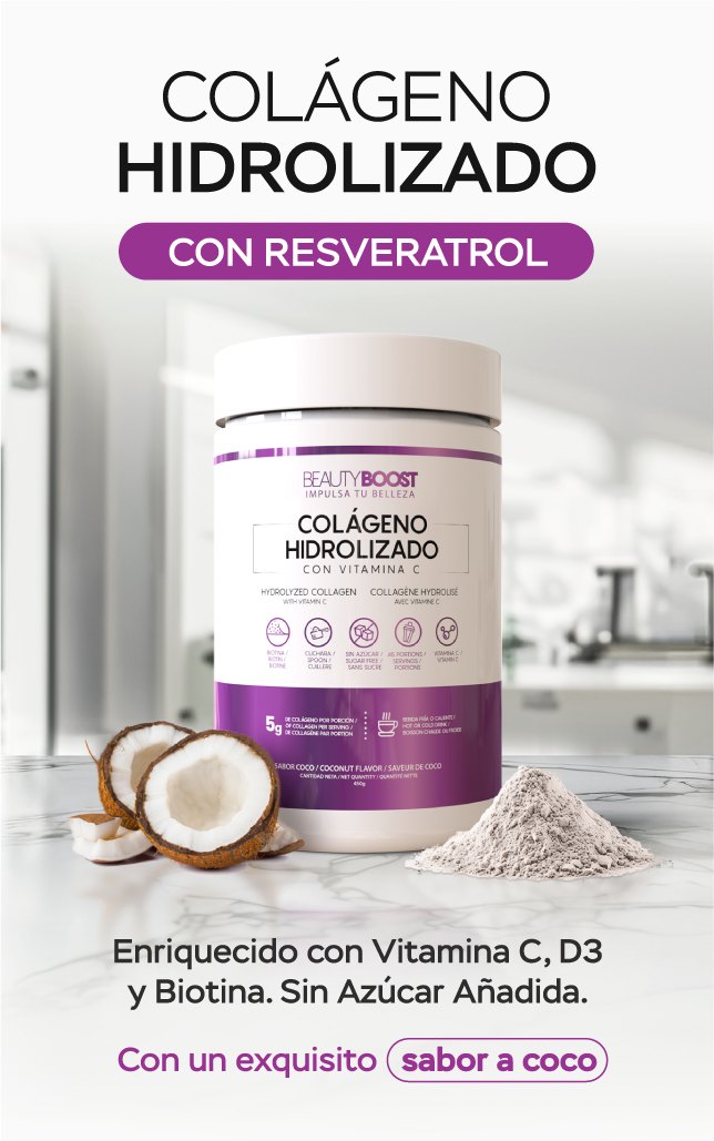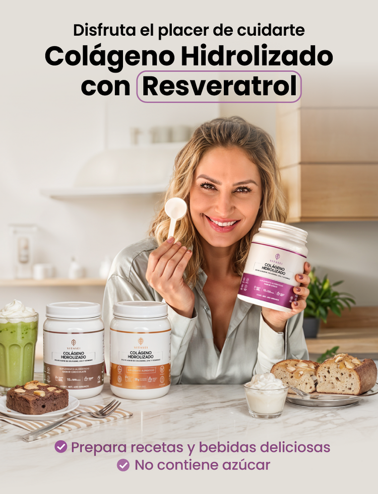 Además de colágeno hidrolizado, nuestra fórmula está enriquecida con Resveratrol, un conocido antioxidante, Biotina, un componente conocido por sus beneficios. Además, esta fórmula contiene Vitamina D3, Vitamina C, Vitamina A y Vitaminas B1, B6 y B12.