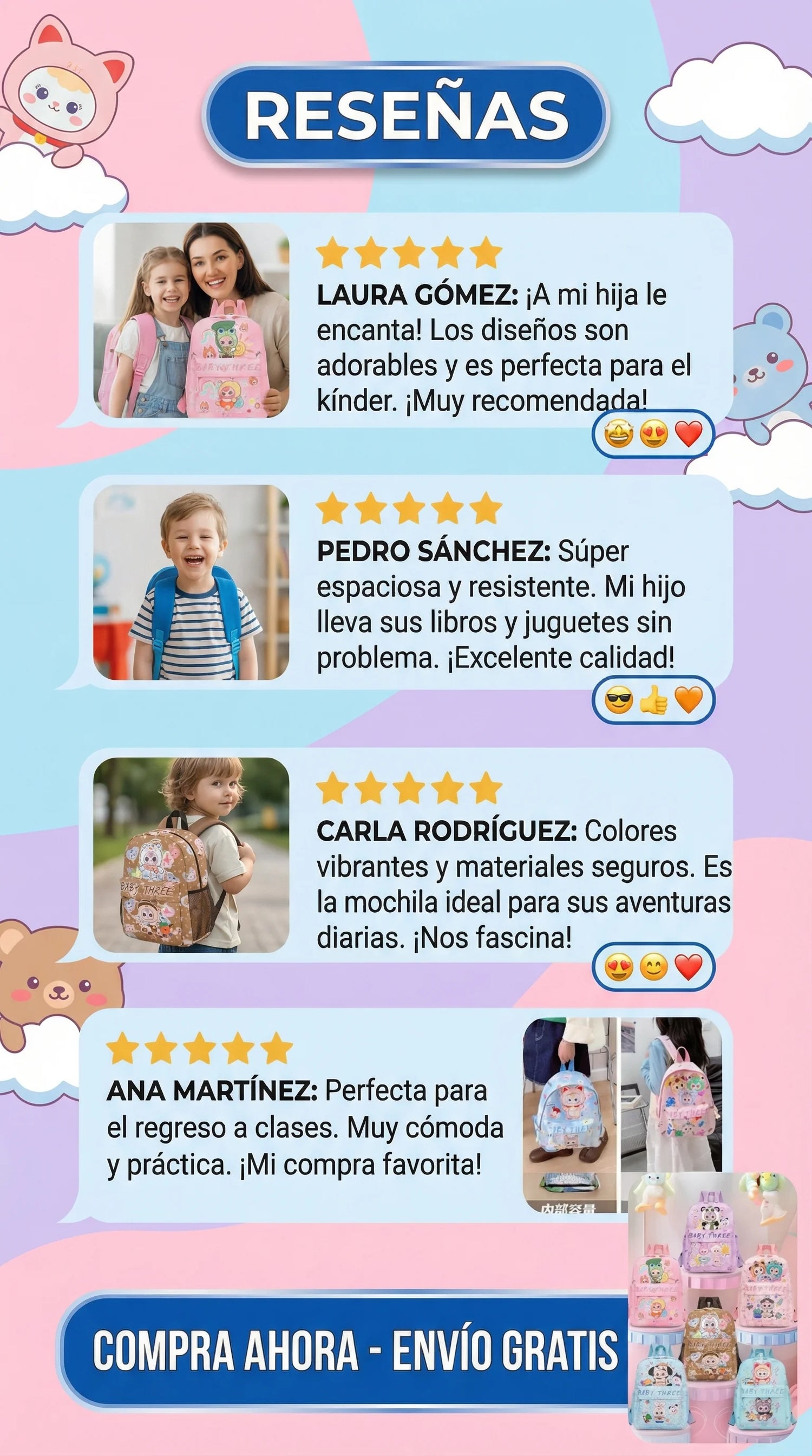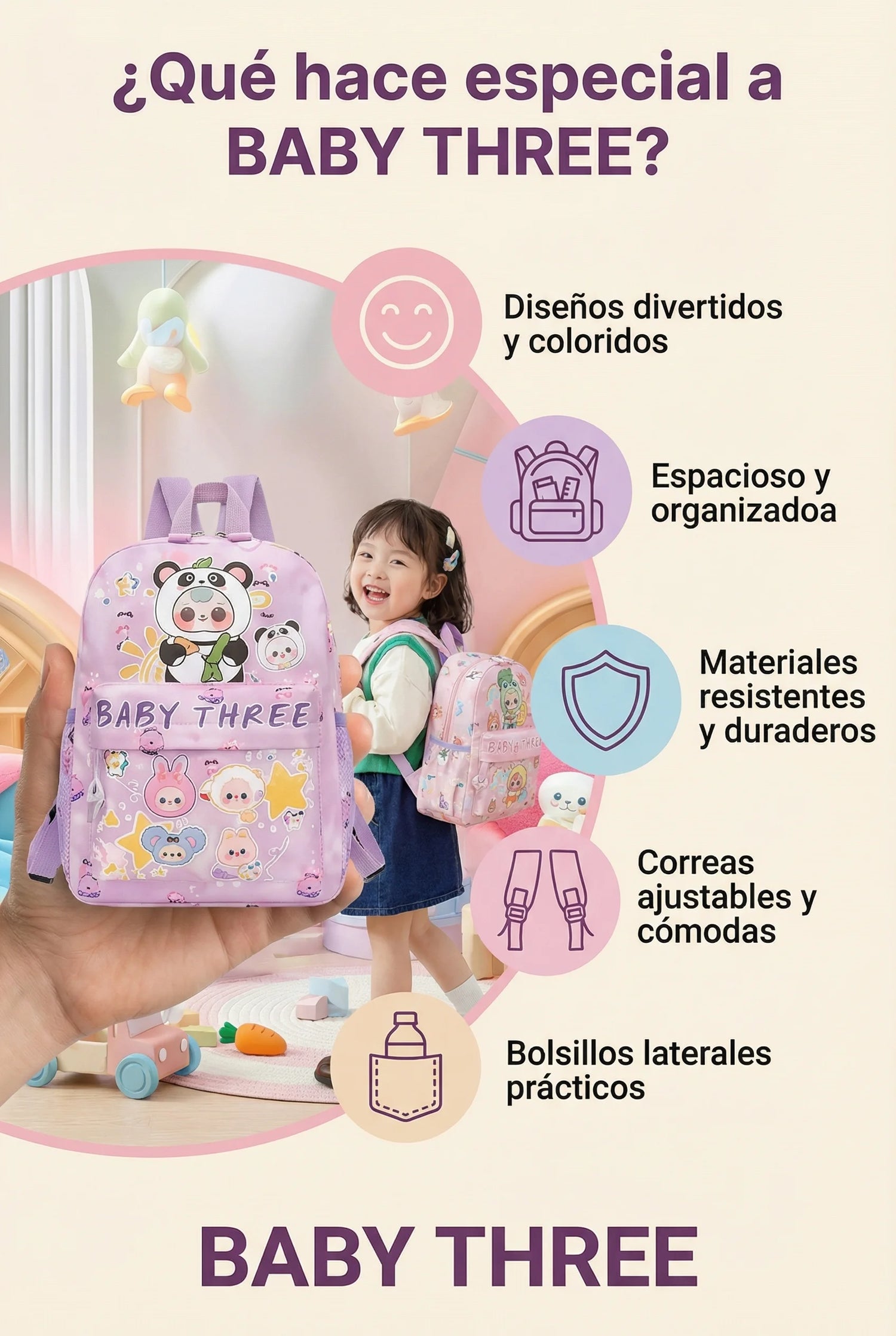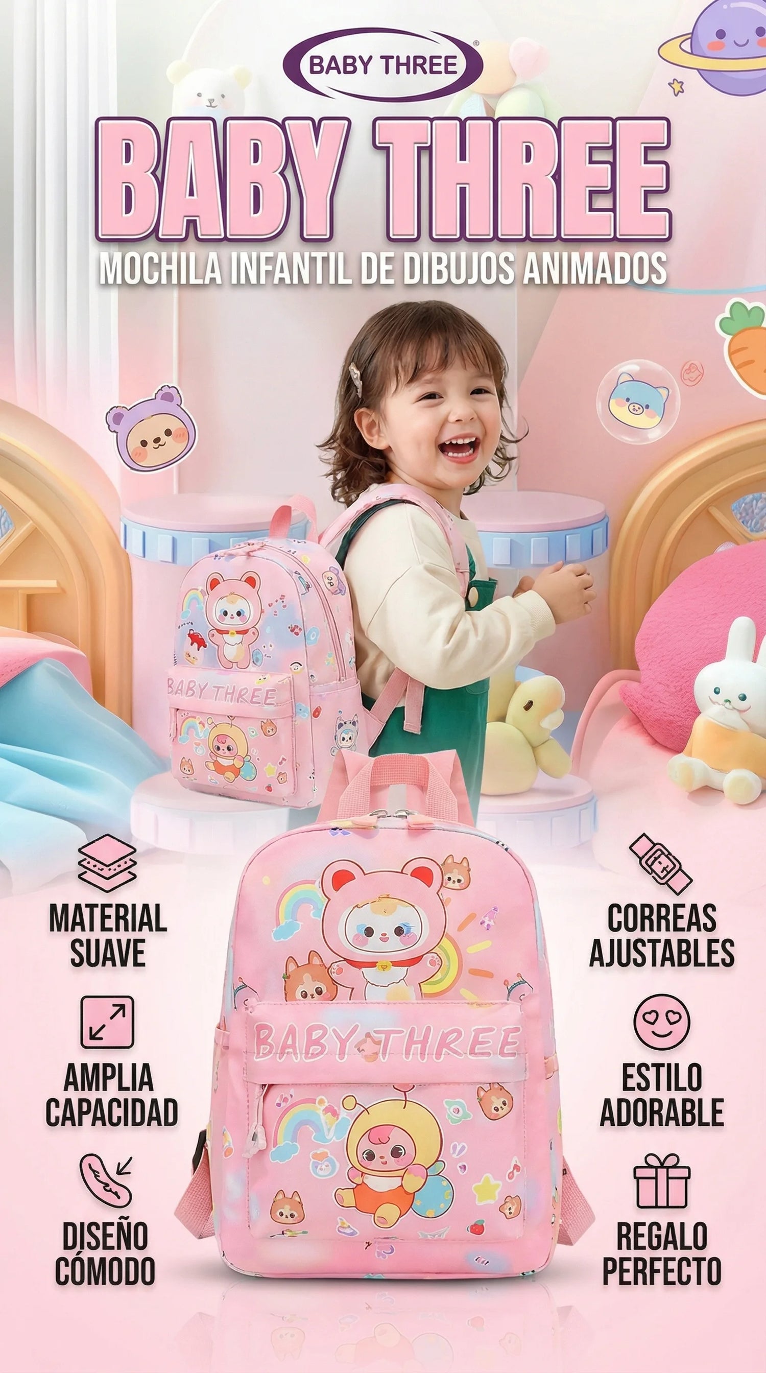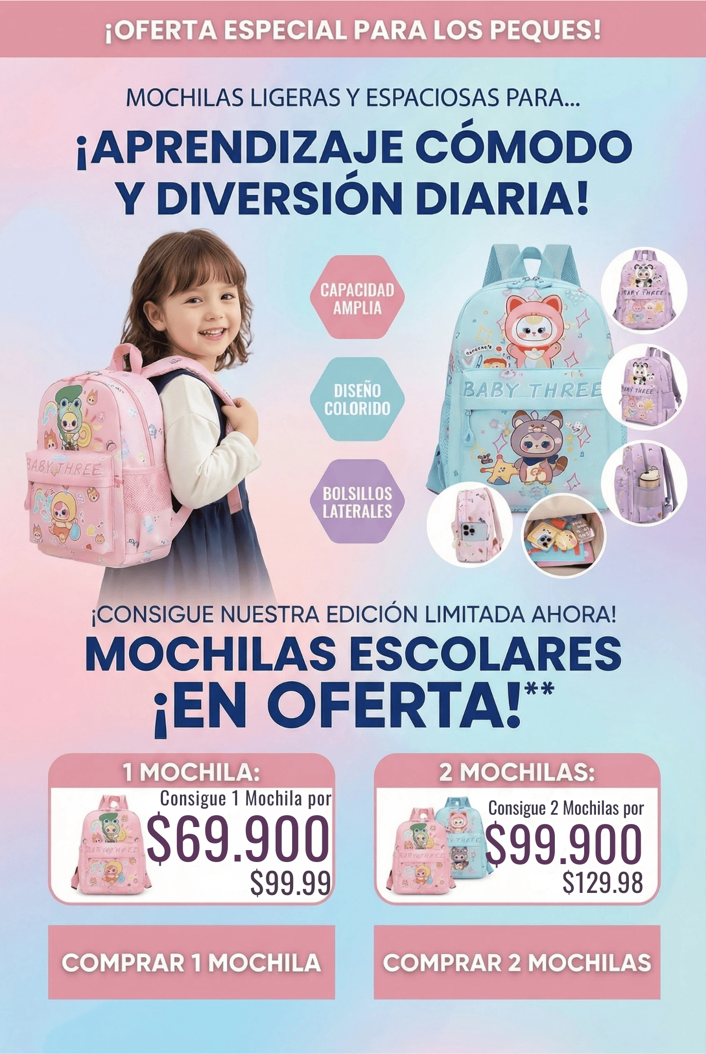 🌈 Morral Escolar Baby Three S1494 – Ligero, Resistente y Perfecto para Niños